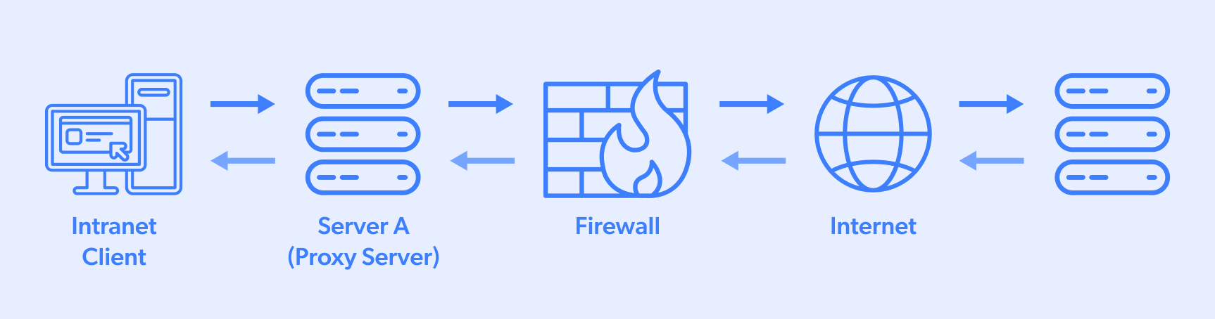 Un proxy inverse est un moyen de structurer le trafic proxy afin d’ajouter une couche de protection supplémentaire à un pool de données interne qui se trouve sur un réseau privé/isolé. Pour ce faire, il transfère d’abord les requêtes via un pare-feu, puis vers le premier serveur (A) qui, à l’insu du demandeur, les transfère vers le deuxième serveur (B) qui possède réellement les informations cibles en question. Ensuite, le serveur A stocke (met en cache) les données afin que, lorsque des requêtes similaires seront effectuées à l’avenir, le trafic réseau soit réduit.