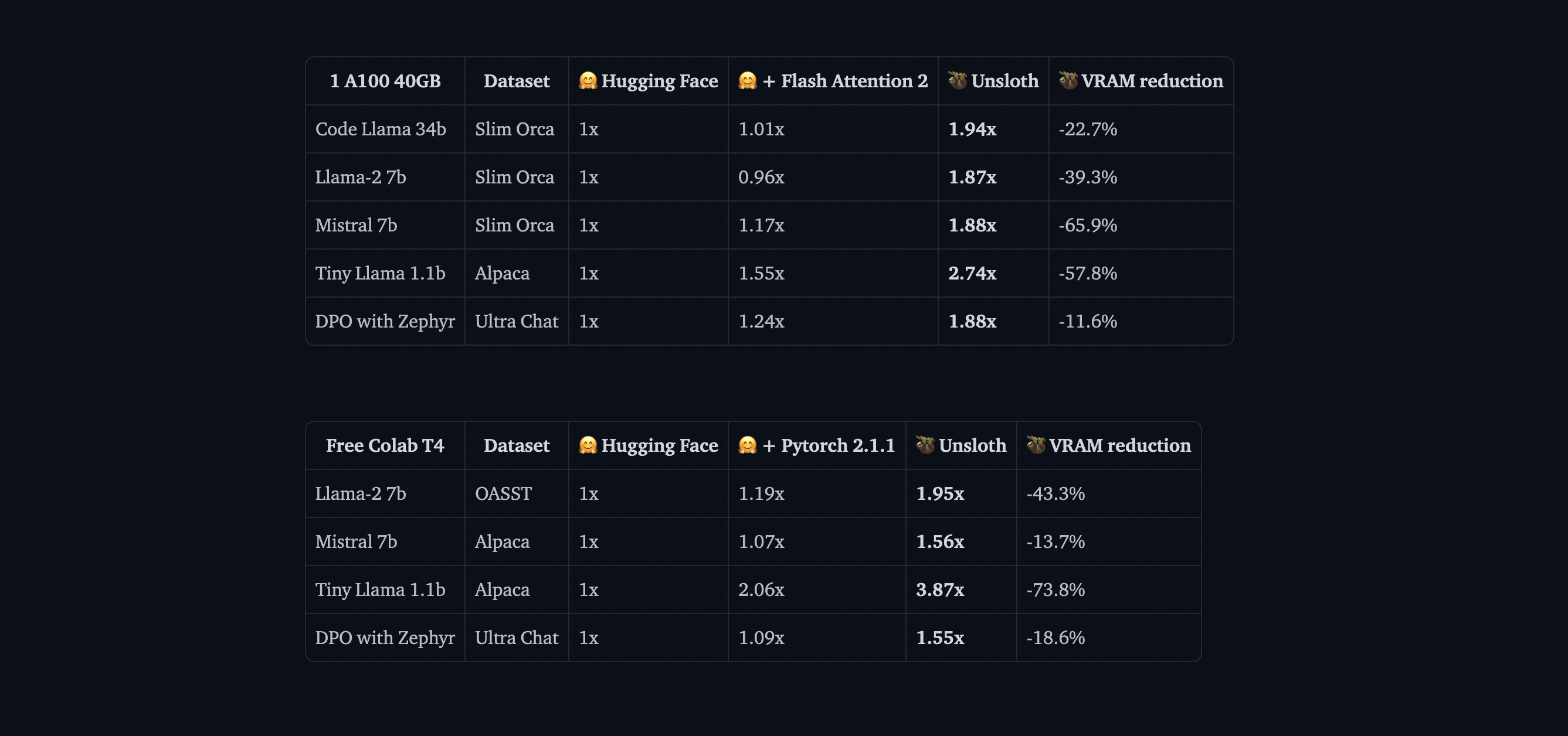 Les améliorations de performances apportées par Unsloth sont impressionnantes. Dans les benchmarks, il atteint des vitesses d’entraînement deux fois plus rapides que les implémentations de transformateurs standard, tout en utilisant 40 % de mémoire en moins. Cela signifie que vous pouvez entraîner de plus grands modèles ou utiliser des lots plus importants sur le même matériel. Plus important encore, la dégradation de la précision est nulle, ce qui vous permet de bénéficier de tous ces avantages sans sacrifier la qualité du modèle.