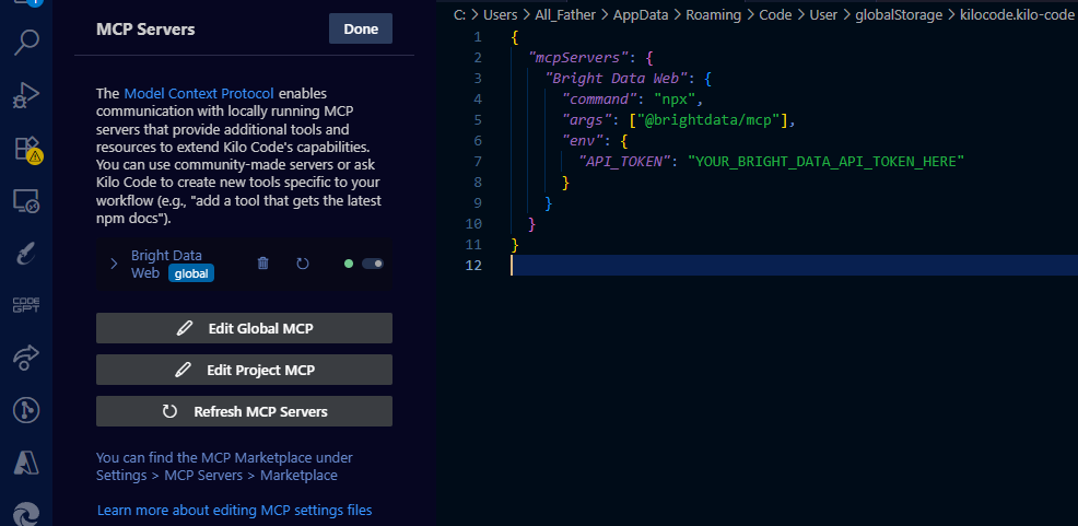 Comment connecter Kilo Code à Web MCP de Bright Data dans Visual Studio Code