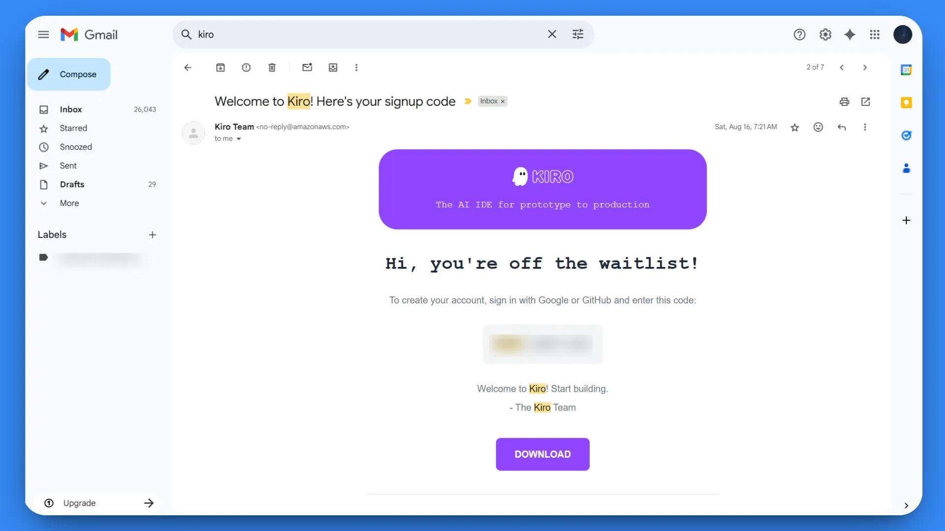 - Accès à Kiro (nécessite de s’inscrire sur la liste d’attente et de recevoir une confirmation)