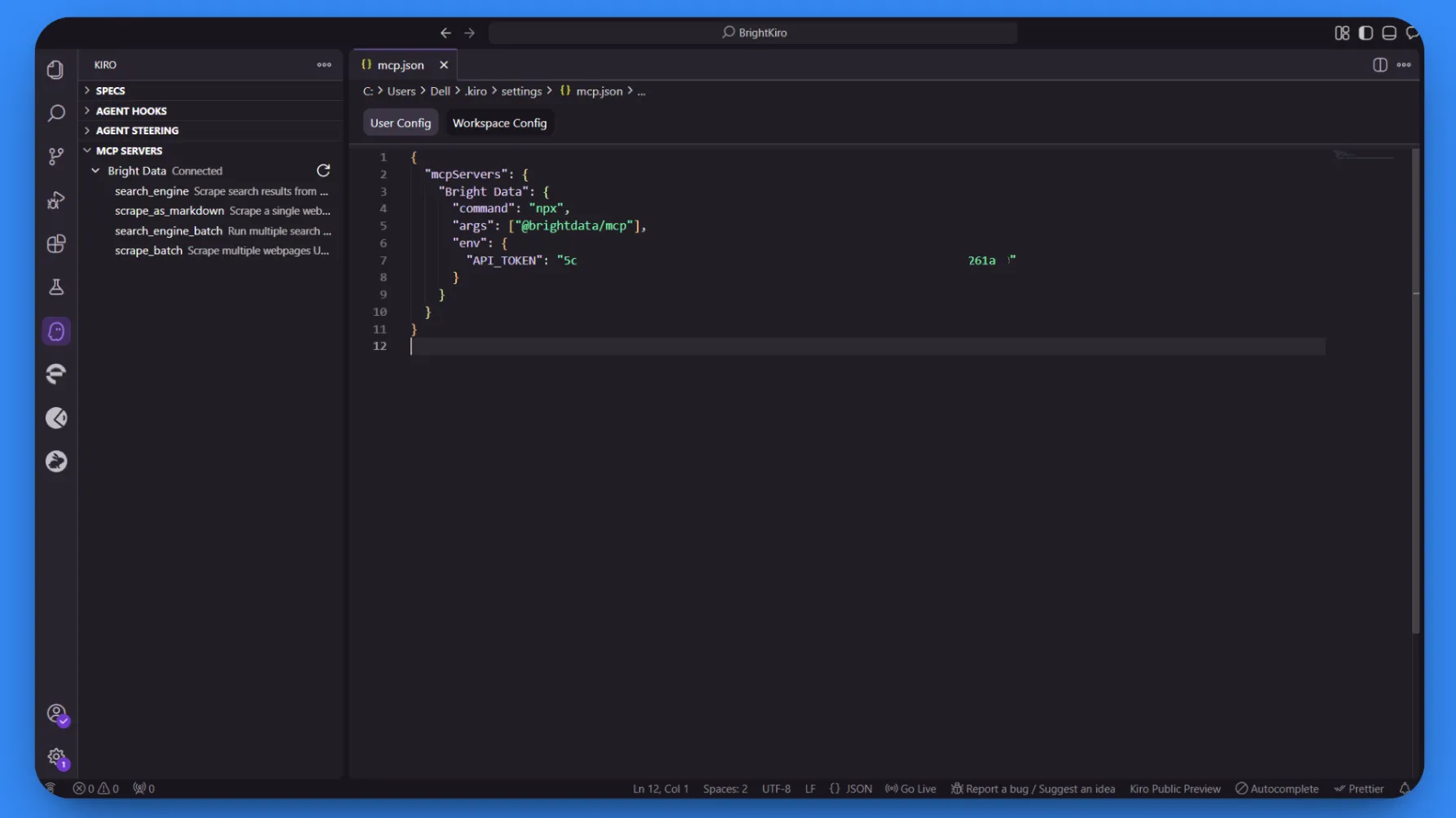 Avec Bright Data MCP connecté, chaque invite Kiro peut utiliser des ” données en direct ” comme élément clé, transformant la génération de code statique en une automatisation complète et prête à l’emploi.