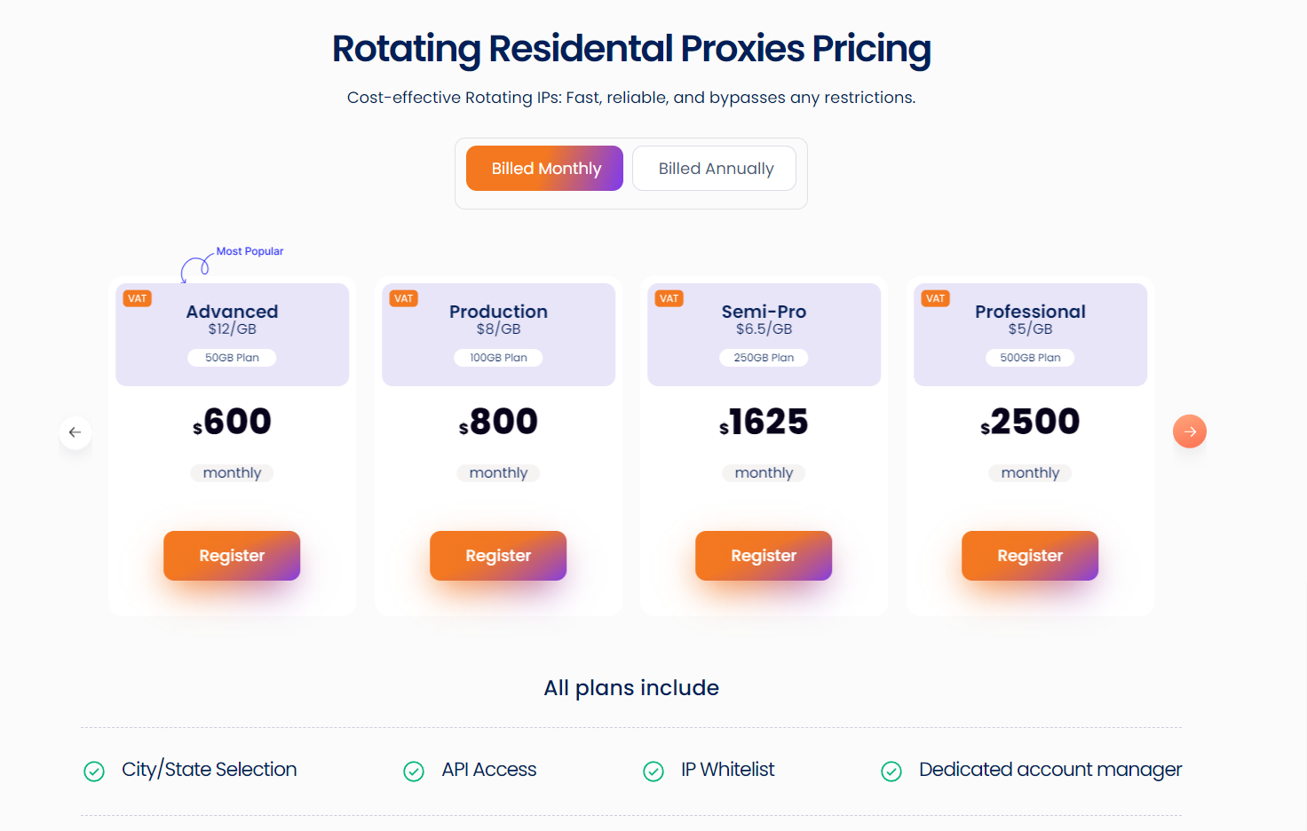 NetNut et Bright Data proposent tous deux plusieurs plans et niveaux pour leur service de Proxy résidentiel.
