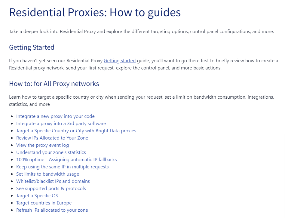 En comparaison, Bright Data fournit une documentation complète, des cours magistraux sur les données web, des vidéos, des blogs, des webinaires, des extraits de code pour plusieurs langages de programmation et de nombreux préréglages pour aider les utilisateurs qui sont développeurs. Les informations disponibles sur le site web de Bright Data sont en fait plus que suffisantes.