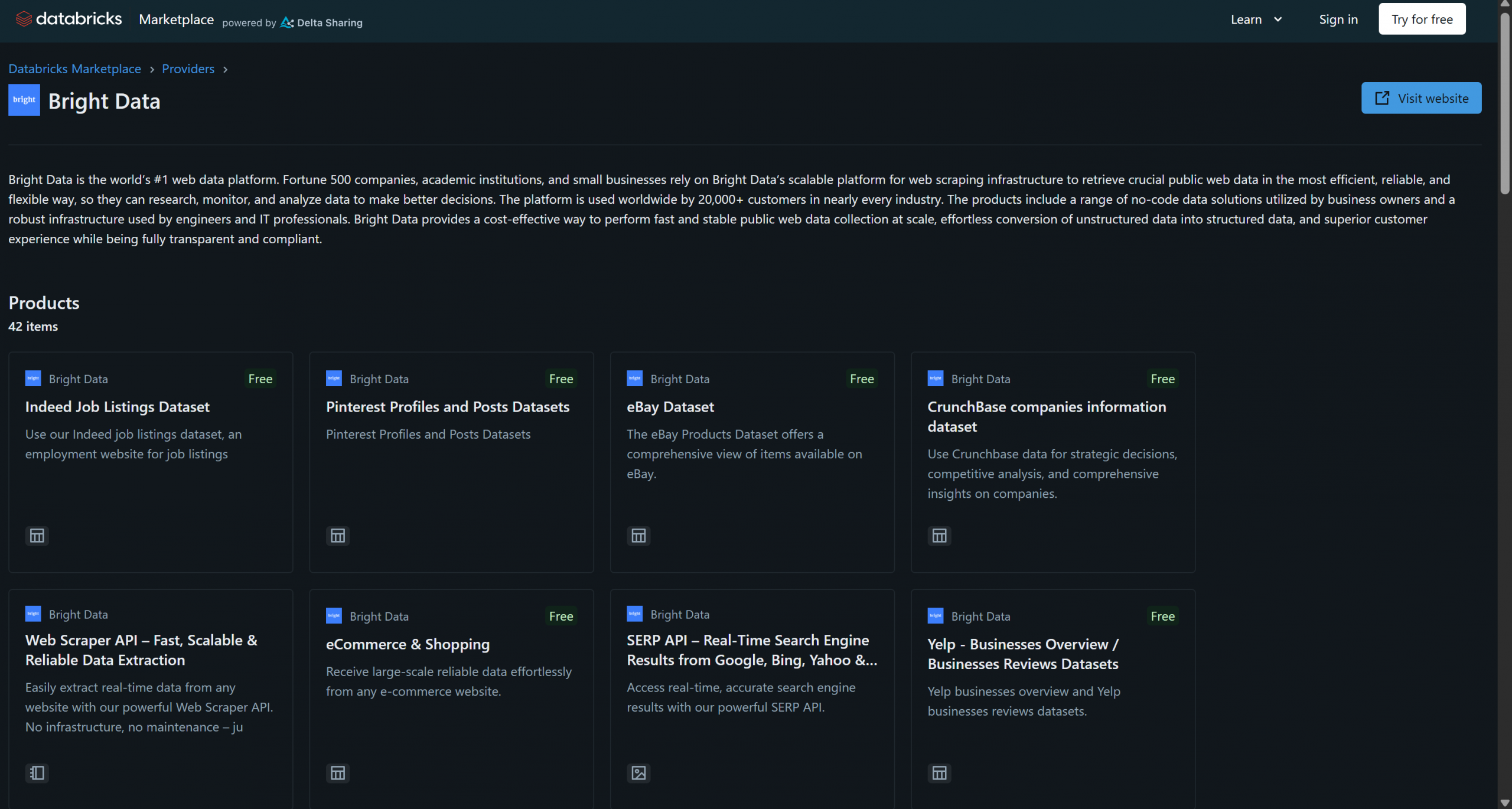 Bright Data a récemment rejoint Databricks en tant que fournisseur de produits de données et propose déjà plus de 40 produits :