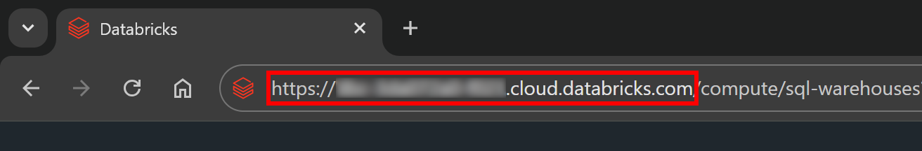 Pour vous connecter à une ressource de calcul Databricks, vous devez spécifier votre nom d’hôte Databricks. Celui-ci correspond à l’URL de base associée à votre compte Databricks et se présente sous la forme suivante :