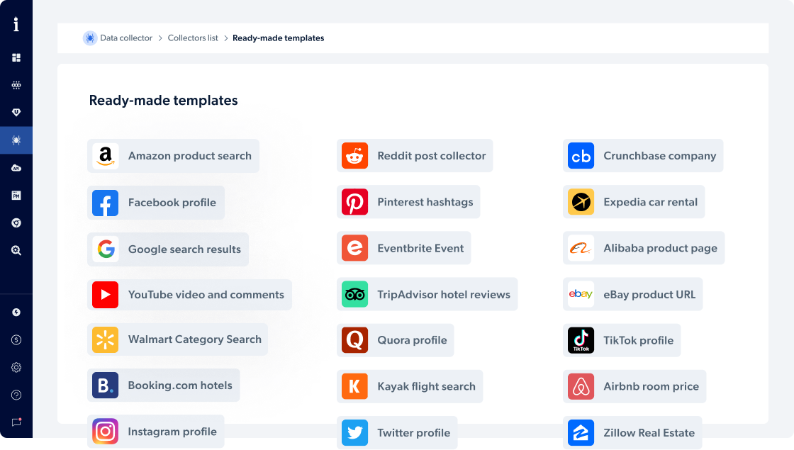 - Choisissez votre site web cible et les points de données pertinents pour votre entreprise.