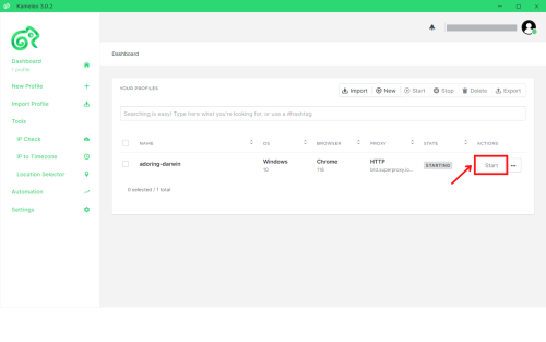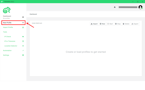 Dans Kameleo, cliquez sur l’option « Nouveau profil » située dans le panneau de navigation de gauche.