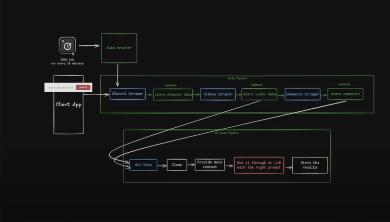 - Déclencher le scraping des données pour les éléments suivis (par exemple, des canaux spécifiques, des requêtes de recherche ou des profils de réseaux sociaux).
