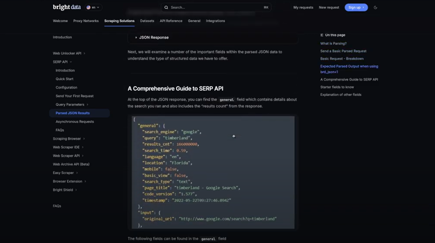 Pour surveiller les performances de votre marque sur les moteurs de recherche tels que Google, nous utiliserons l’API SERP de Bright Data . Cet outil facilite l’extraction des résultats des moteurs de recherche et permet d’extraire des données telles que les classements, les liens et les descriptions.